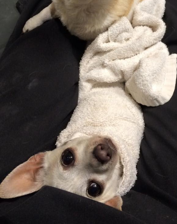 Your pet lies on the floor on a supportive dog bed with their head in our lap. With small dogs, we may swaddle them in a towel to make them feel more secure. Someone is always available for belly rubs and we always talk to the doggies to help them understand that they are safe and that we are there to help. We hand scale their teeth with manual dental instruments on the inside and outside surface of the teeth, removing the tartar build up. When we are done scaling, we gently polish the teeth with prophy polish and a toothbrush. When the cleaning is over and you are back to pick up your dog, you will receive a report card telling you what we were able to see during their appointment and possibly any notes about specific areas that we want you and your vet to keep an eye on or inspect further. We do not diagnose or treat any infections or disease so our notes will not be meant as anything more than just a reference guide to what is visible in your dogs mouth.